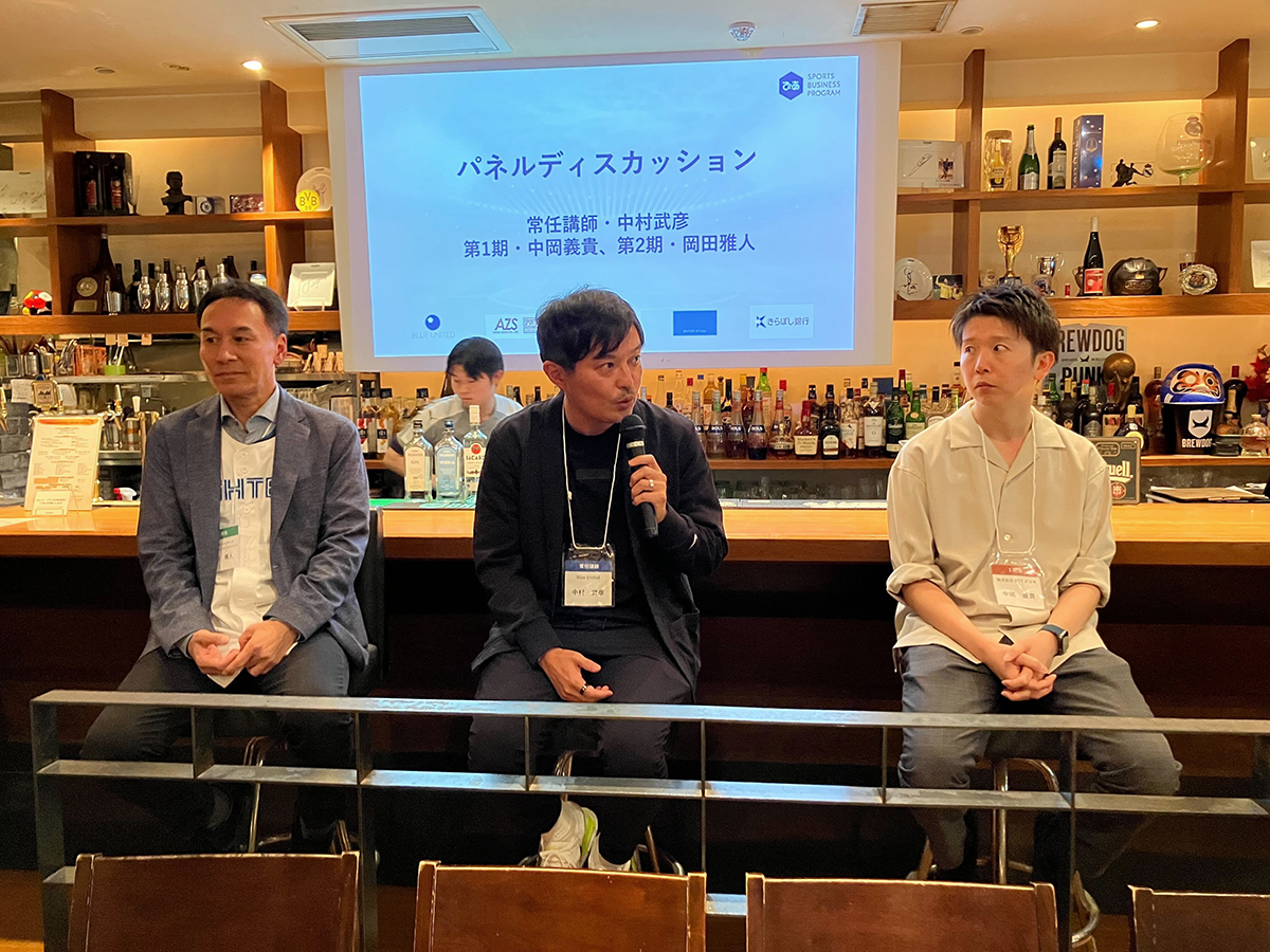 常任講師・中村武彦に加え、第1期と第2期の卒業生2名が登壇した「パネルディスカッション」では、彼らのキャリアを振り返りながら、ぴあSBPのつながりや、ここで学んだことがどのように生かされているかなどについて語り合いました。短い時間ではありましたが、その後の話題のタネになる貴重な話を聞くことができました。