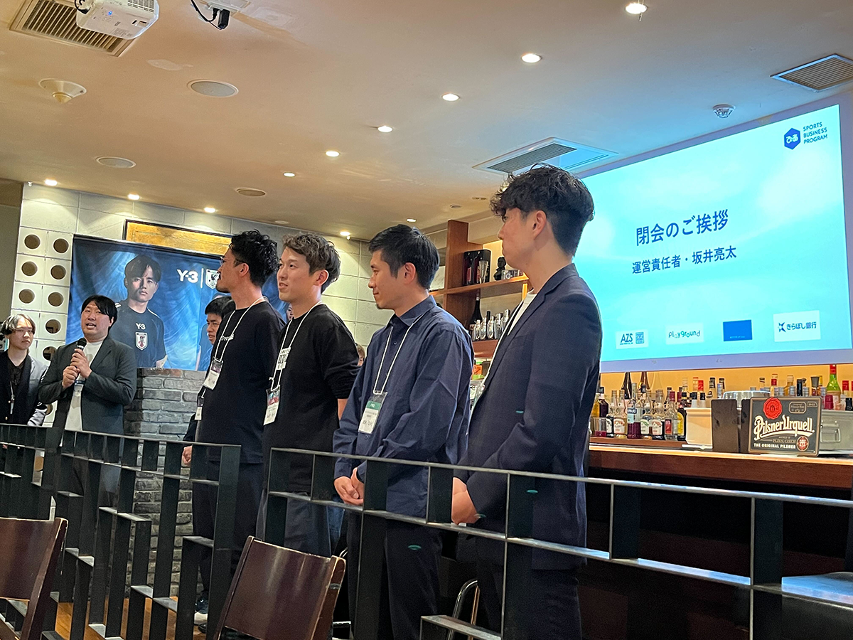 ぴあSBPの恒例行事である「入社会見」では、ぴあSBPで学びスポーツ業界への転職・就職を果たした5名の卒業生を「ピッチ外の選手」としてスポットライトを当てました。スポーツチーム、スポーツ統括団体、スポーツ関連企業などで既に活躍している、または来年以降に活躍する仲間を激励しました。