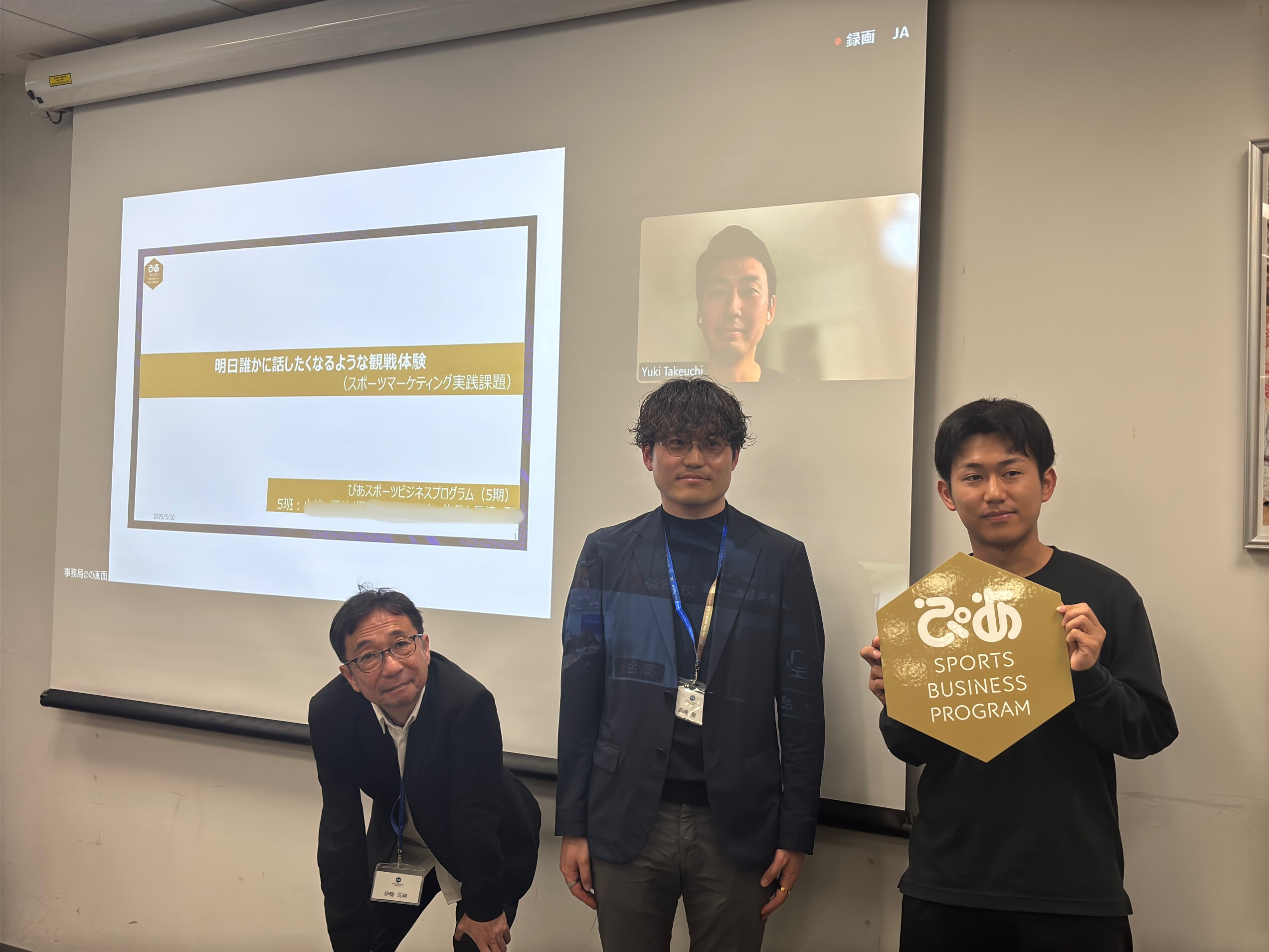 5月10日(土)は、第5期生にとって初めての「実践」の日となりました。受講生は5グループに分かれ、プレゼンテーションを実施。ソフトボール、競馬、ラグビー、WEリーグなど、各自が現地で観戦したスポーツ体験をもとに、「ポジティブに感じた点はどこか」「より楽しくするためには何が必要か」といったテーマで活発な議論を行いました。