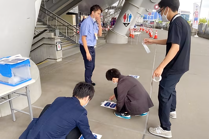 電子チケット認証端末の設定準備、ゲート入場のサポートを体験。試合当日のクラブチケット担当者の動きなどを見学。