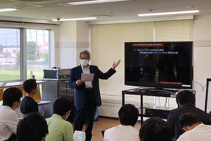 埼玉スタジアムの設計に携わられた担当者からスタジアム構造に関して講義を受け、実際のスタジアム、および周辺を見学。