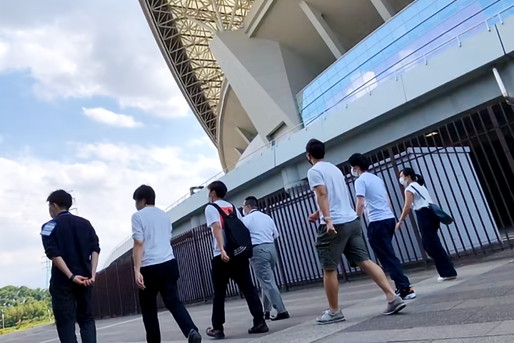 「スタジアムビジネス実践」のプレゼンテーションに向けて実際のスタジアムを視察し、ご担当者に課題感等を伺うことで、より良いアウトプットを目指す場として設定しています。